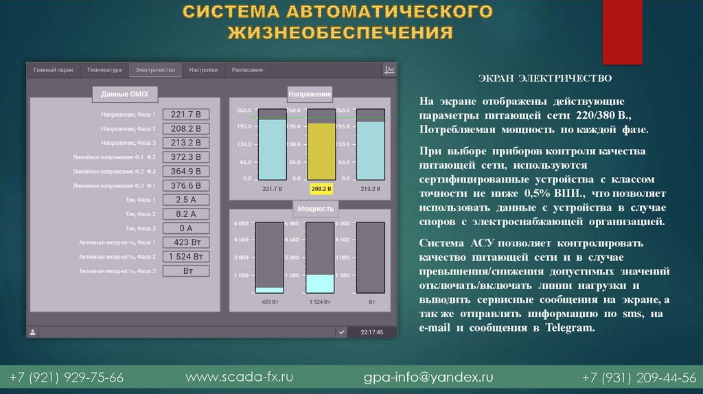 ЭКРАН ЭЛЕКТРИЧЕСТВОНа экране отображены действующие