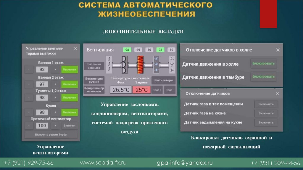 ДОПОЛНИТЕЛЬНЫЕ ВКЛАДКИУправление заслонками,