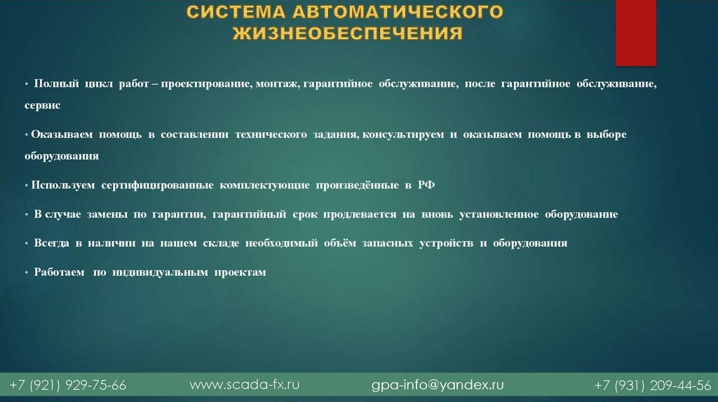 Полный цикл работ – проектирование, монтаж, гарантийное обслуживание, после гарантийное обслуживание,