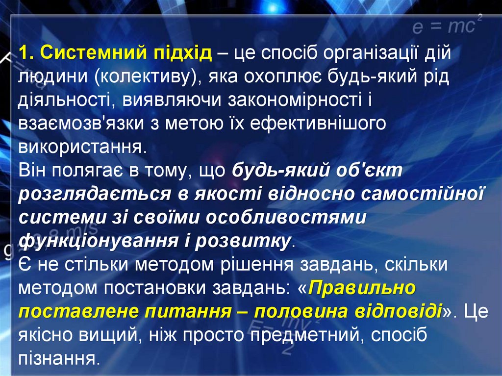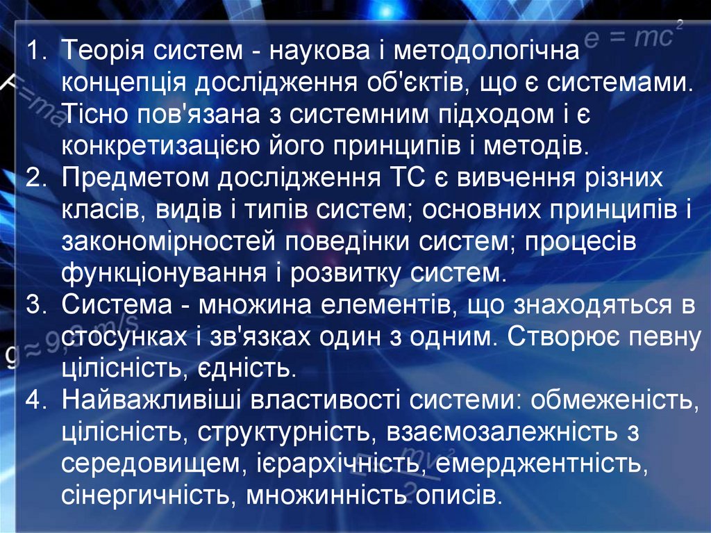 1. Теорія систем - наукова і методологічнаконцепція дослідження об'єктів, що є системами.