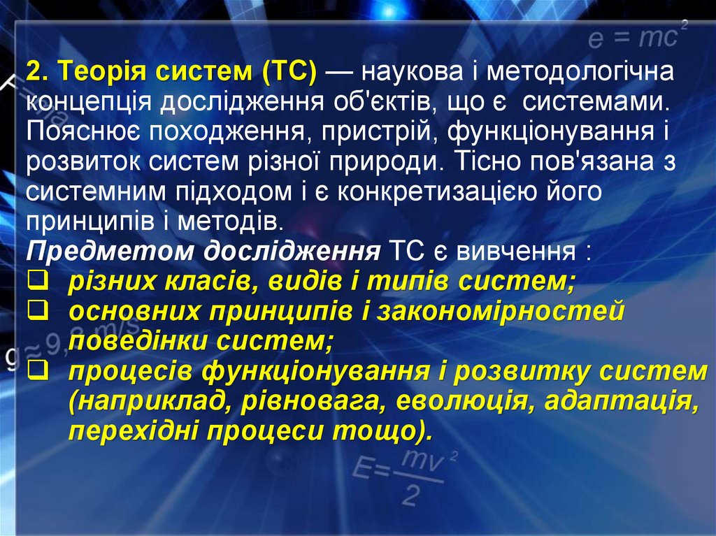 2. Предметом дослідження ТС є вивчення різних