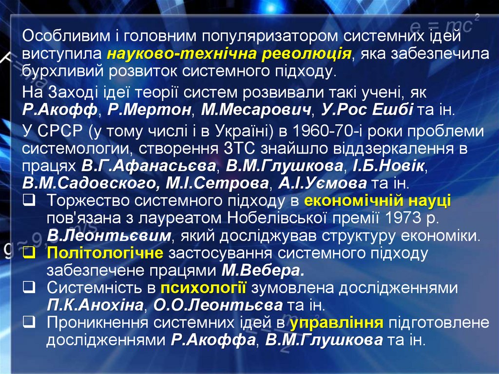 розвитку теорії систем.