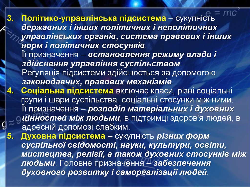 основні підсистеми?