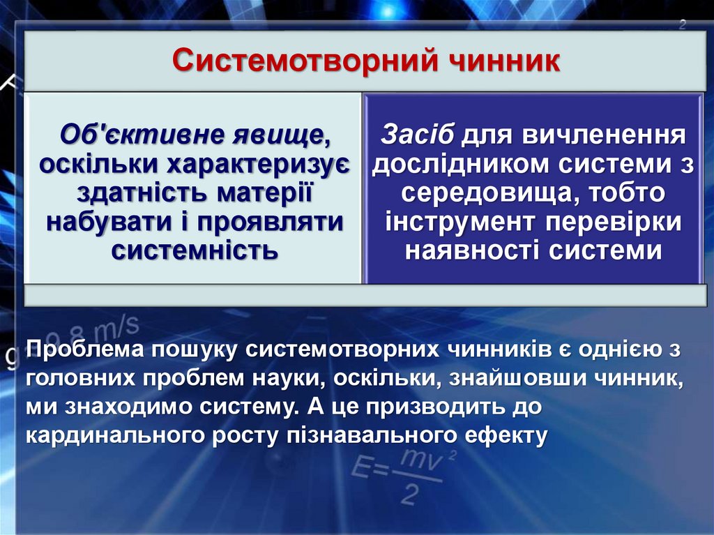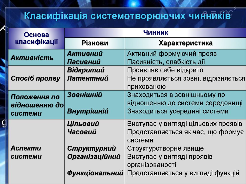 14. Що таке системотворюючий чинник системи? Яка його
