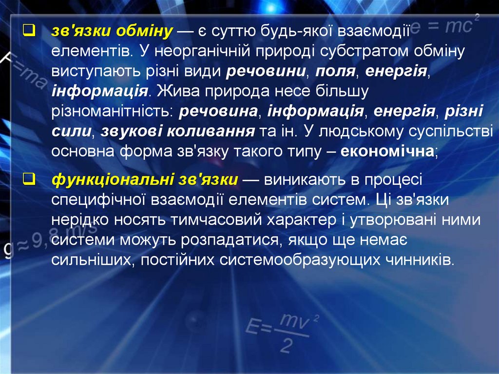 специфічної взаємодії елементів систем. Ці зв'язки