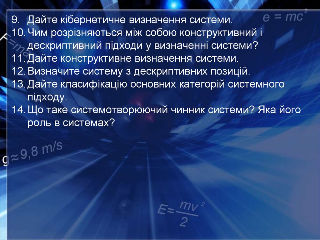 9. Дайте кібернетичне визначення системи.10. Чим розрізняються між собою конструктивний і