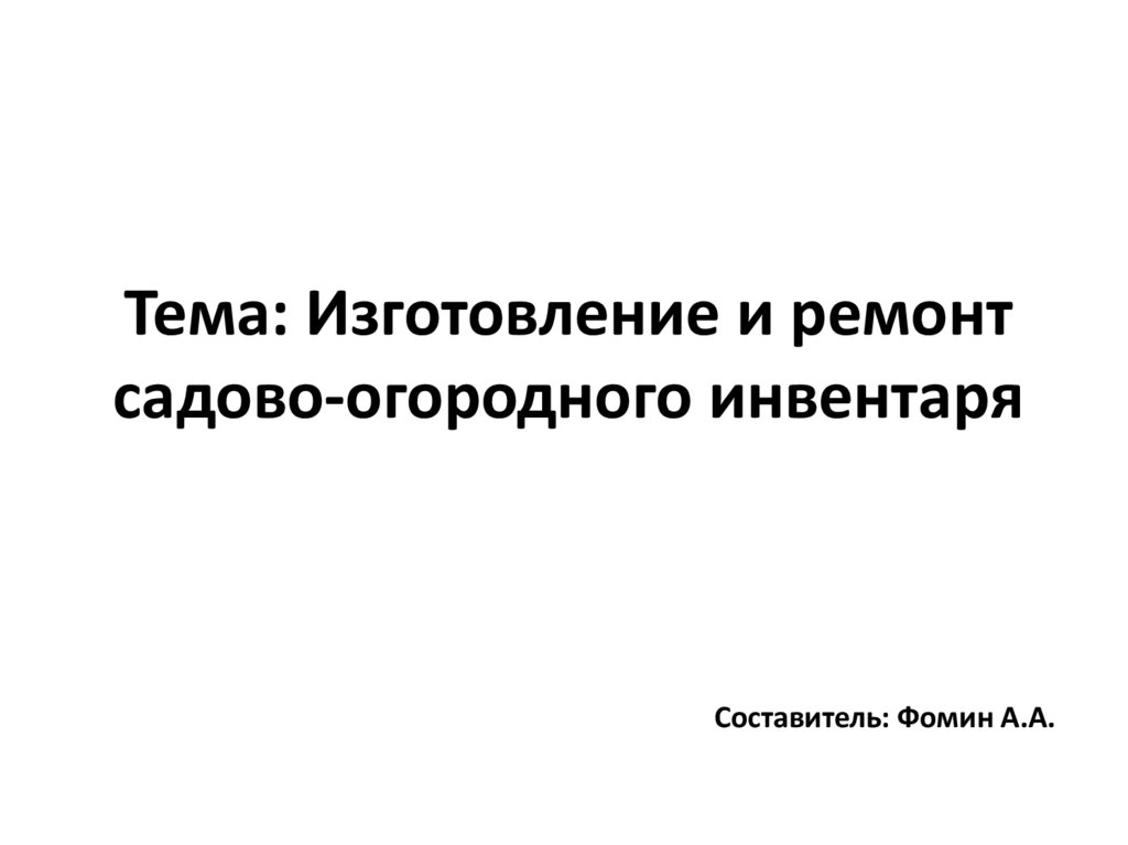 1. Тема: Изготовление и ремонт садово-огородного инвентаря