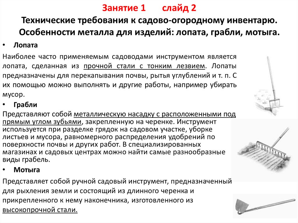 3. Занятие 1 Технические требования к садово-огородному инвентарю. Особенности металла для изделий: лопата, грабли, мотыга.