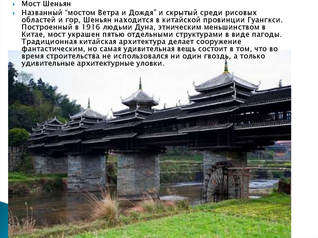 Мост ШеньянНазванный “мостом Ветра и Дождя” и скрытый среди рисовых