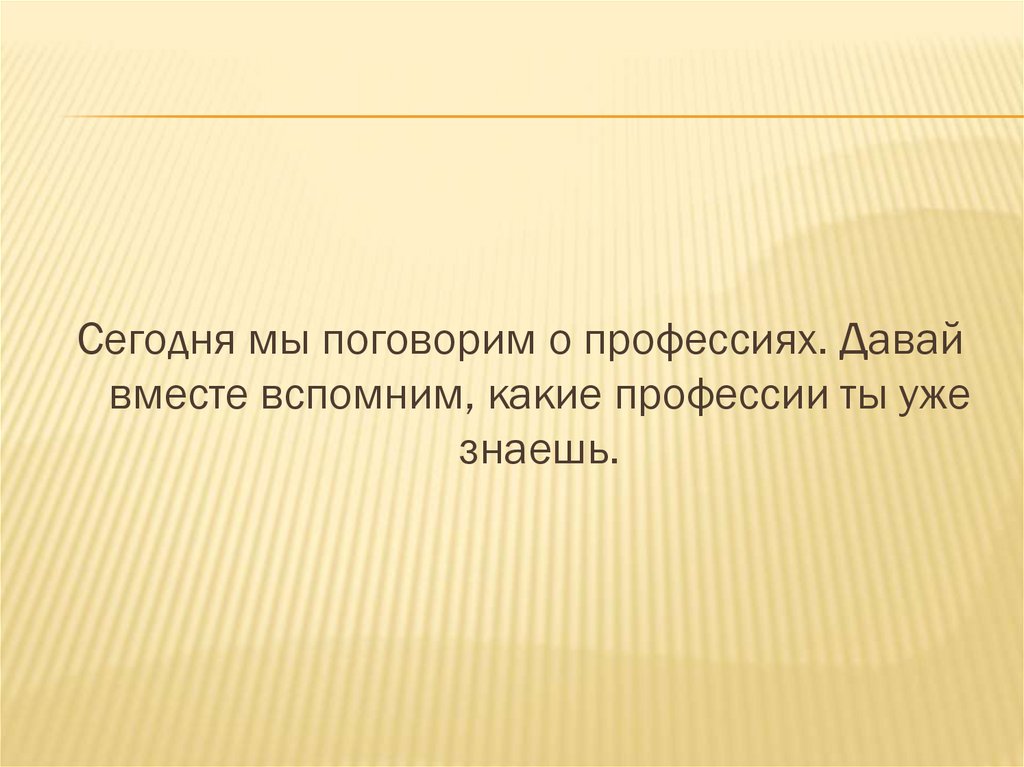 Сегодня мы поговорим о профессиях. Давайвместе вспомним, какие профессии ты уже