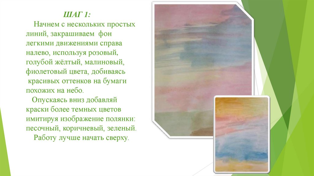 налево, используя розовый,