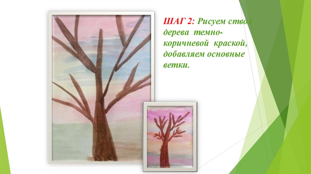 ШАГ 2: Рисуем стволдерева темнокоричневой краской,