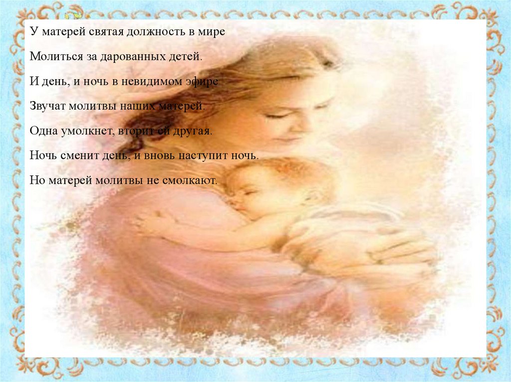 У матерей святая должность в миреМолиться за дарованных детей.