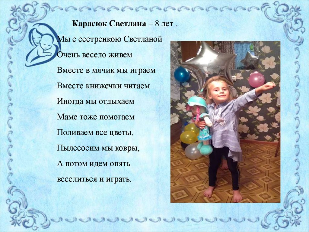 Карасюк Светлана – 8 лет .Мы с сестренкою Светланой