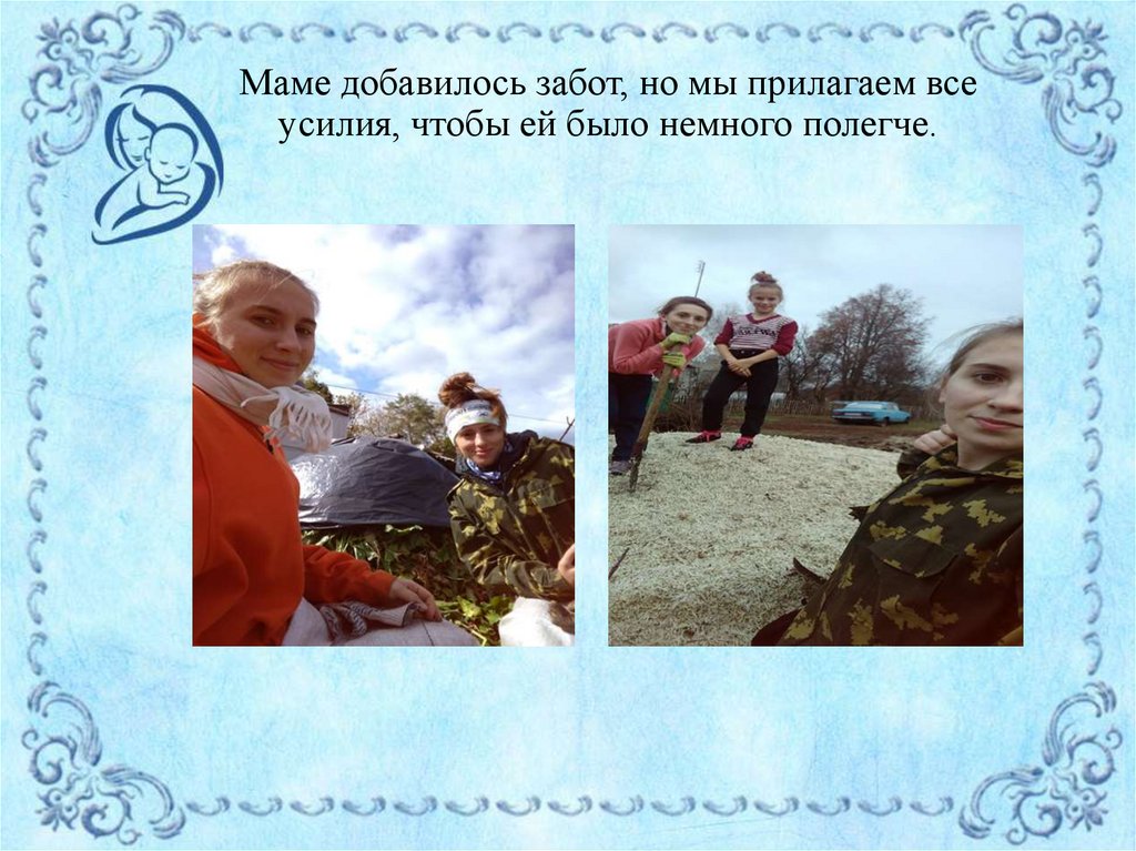 Маме добавилось забот, но мы прилагаем всеусилия, чтобы ей было немного полегче.