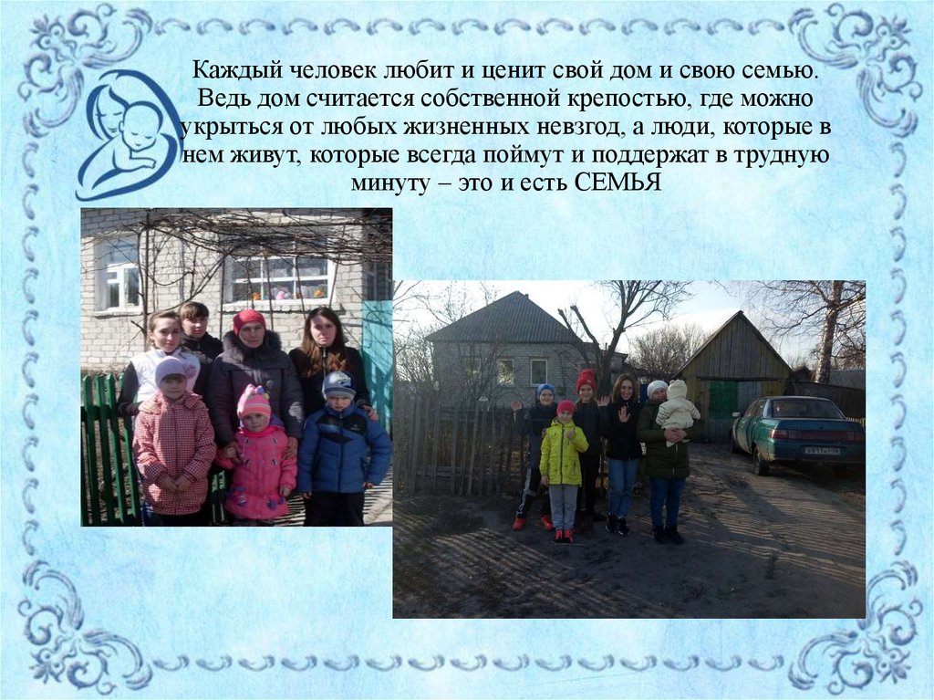 Каждый человек любит и ценит свой дом и свою семью.Ведь дом считается собственной крепостью, где можно