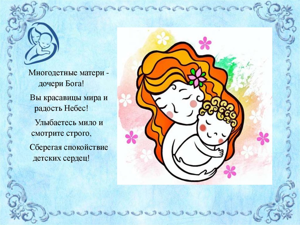Многодетные матери дочери Бога!Вы красавицы мира и