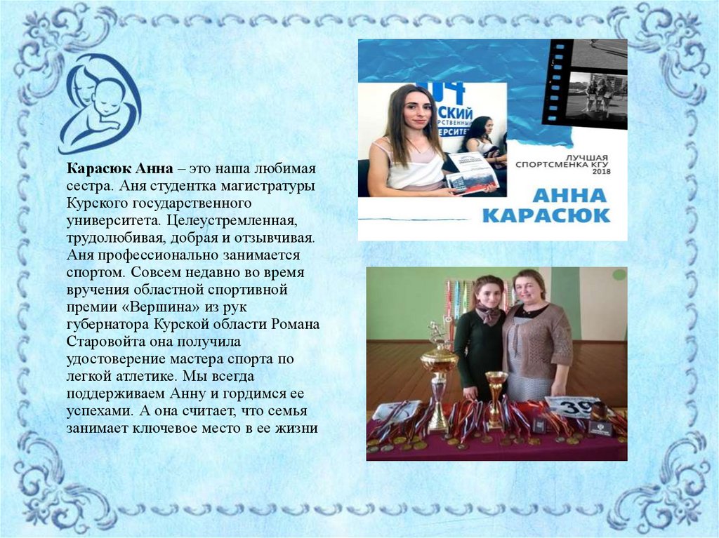 Карасюк Анна – это наша любимаясестра. Аня студентка магистратуры