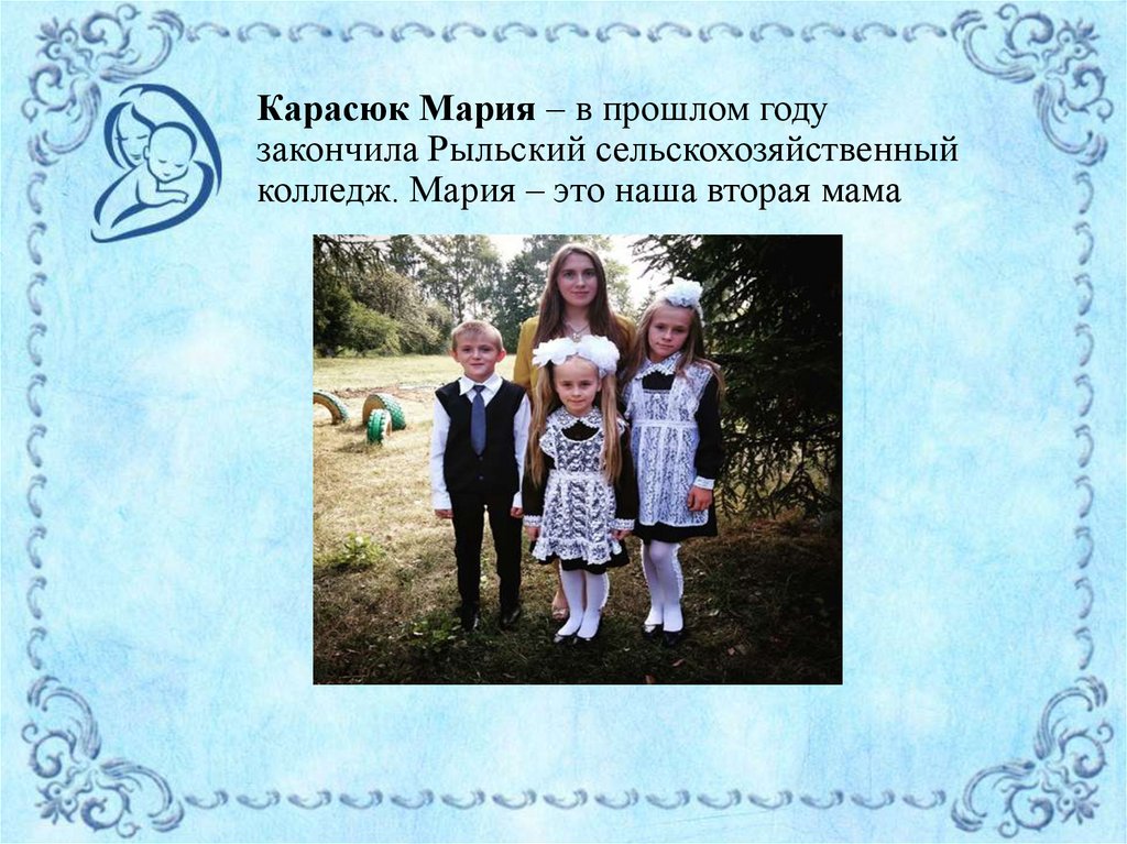 Карасюк Мария – в прошлом годузакончила Рыльский сельскохозяйственный