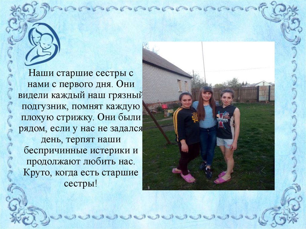 Наши старшие сестры снами с первого дня. Они