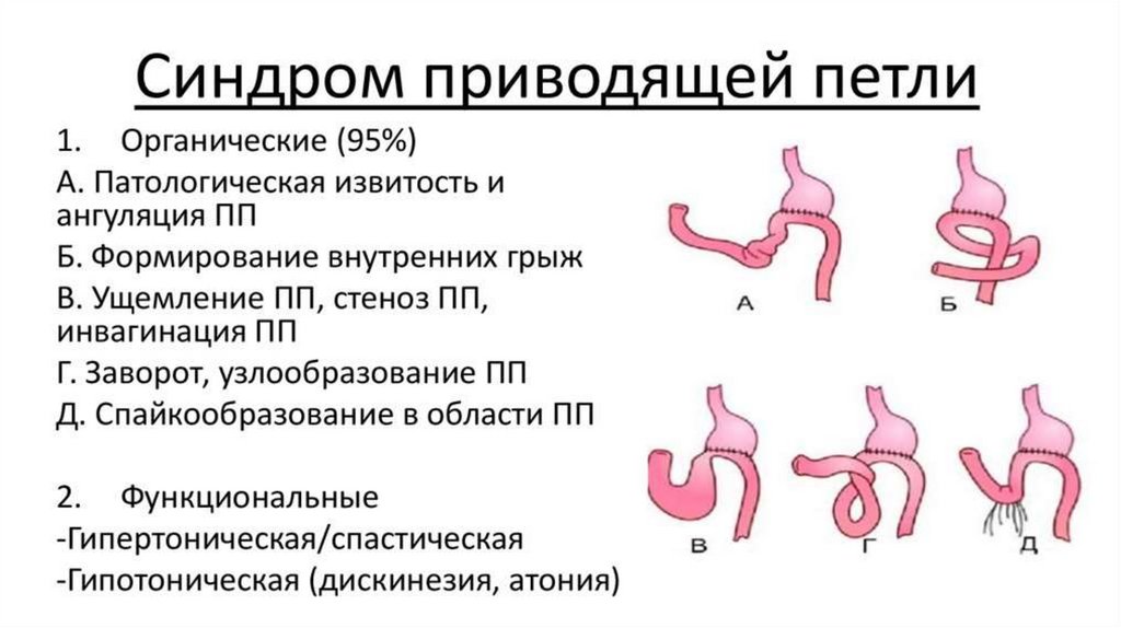 • Синдром приводящей петли может развиваться после резекции