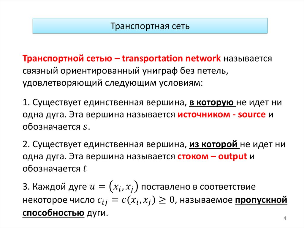 Транспортная сетьТранспортной сетью – transportation network называется