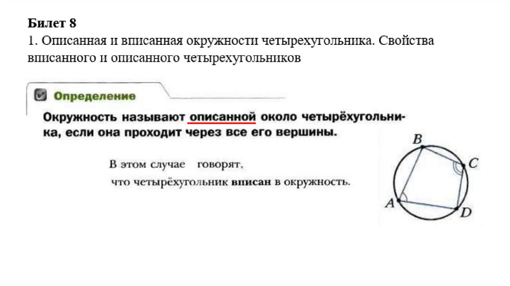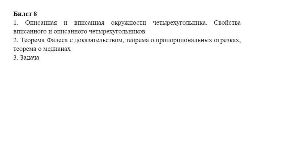 Билеты по геометрии. Переводной экзамен. 8 класс