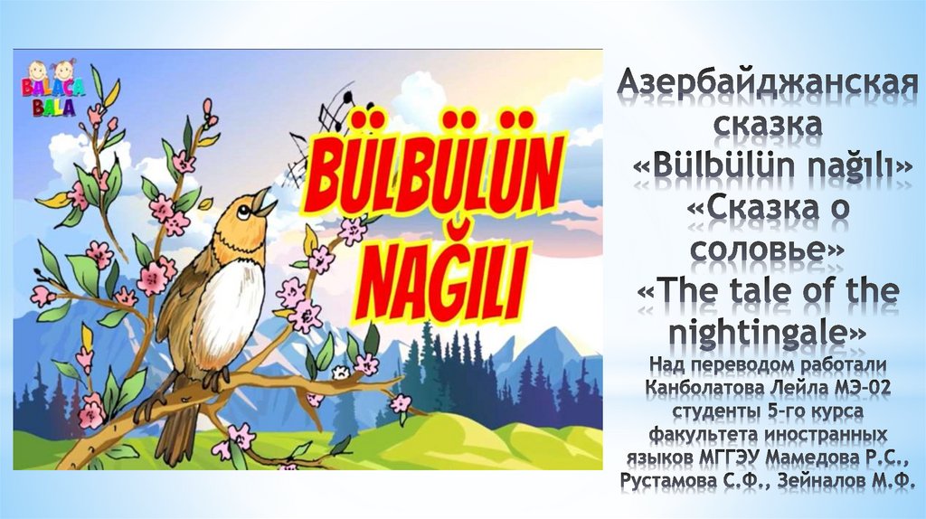 Азербайджанская сказка «Bülbülün nağılı» «Сказка о соловье» «The tale of the nightingale» Над переводом работали Канболатова
