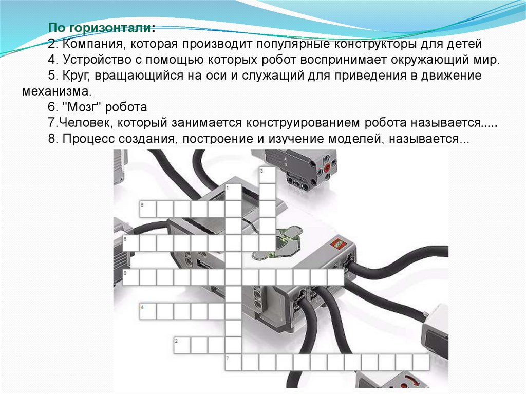 По горизонтали:2. Компания, которая производит популярные конструкторы для детей