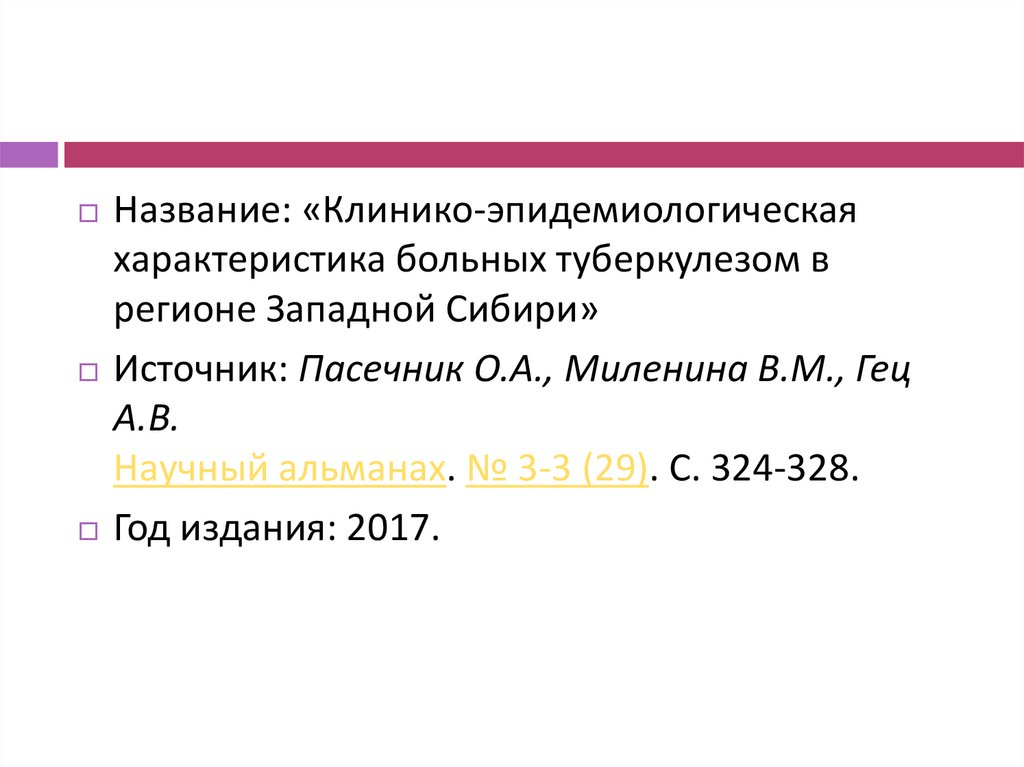 Название: «Клинико-эпидемиологическаяхарактеристика больных туберкулезом в