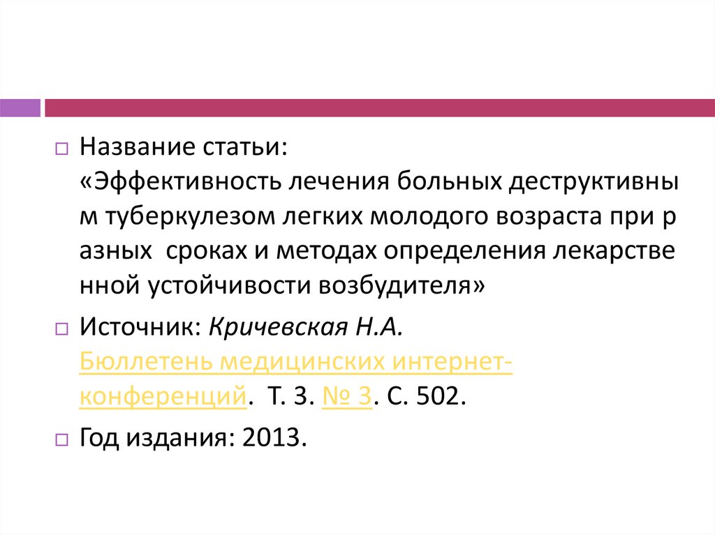Бюллетень медицинских интернетконференций. Т. 3. № 3. С. 502.