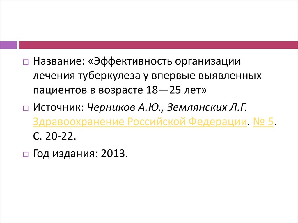 Название: «Эффективность организациилечения туберкулеза у впервые выявленных