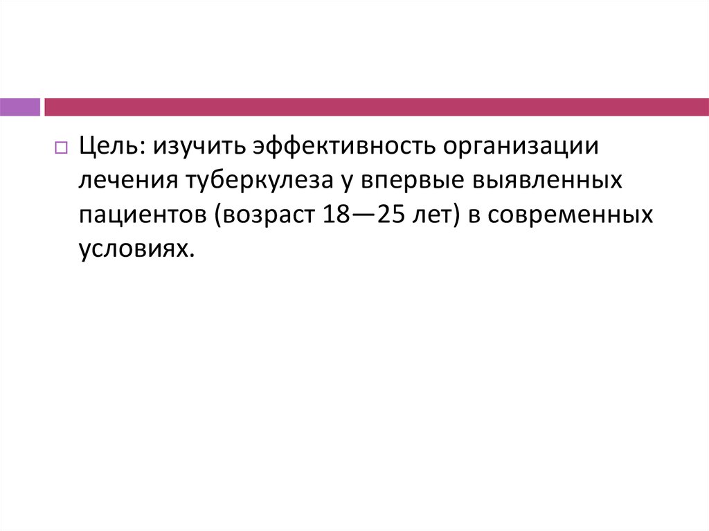 Цель: изучить эффективность организациилечения туберкулеза у впервые выявленных