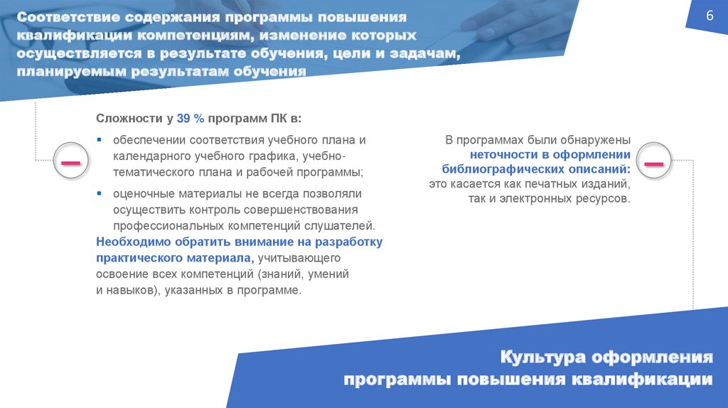 Соответствие содержания программы повышения квалификации