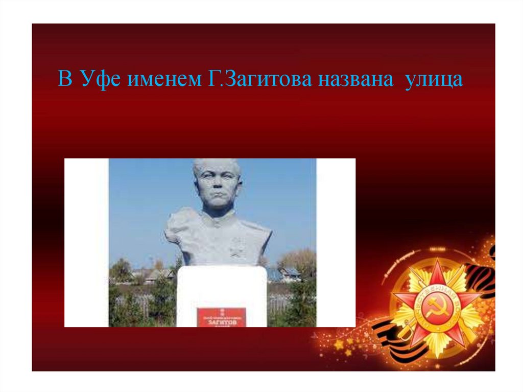 В Уфе именем Г.Загитова названа улица26.