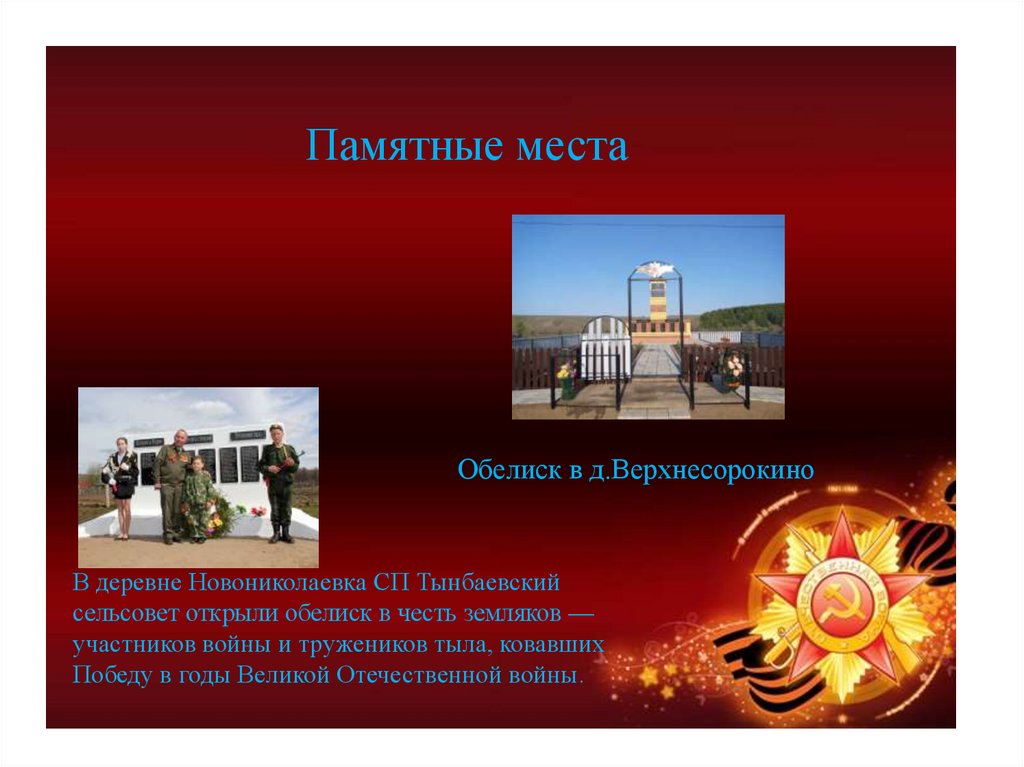 Памятные местаОбелиск в д.Верхнесорокино