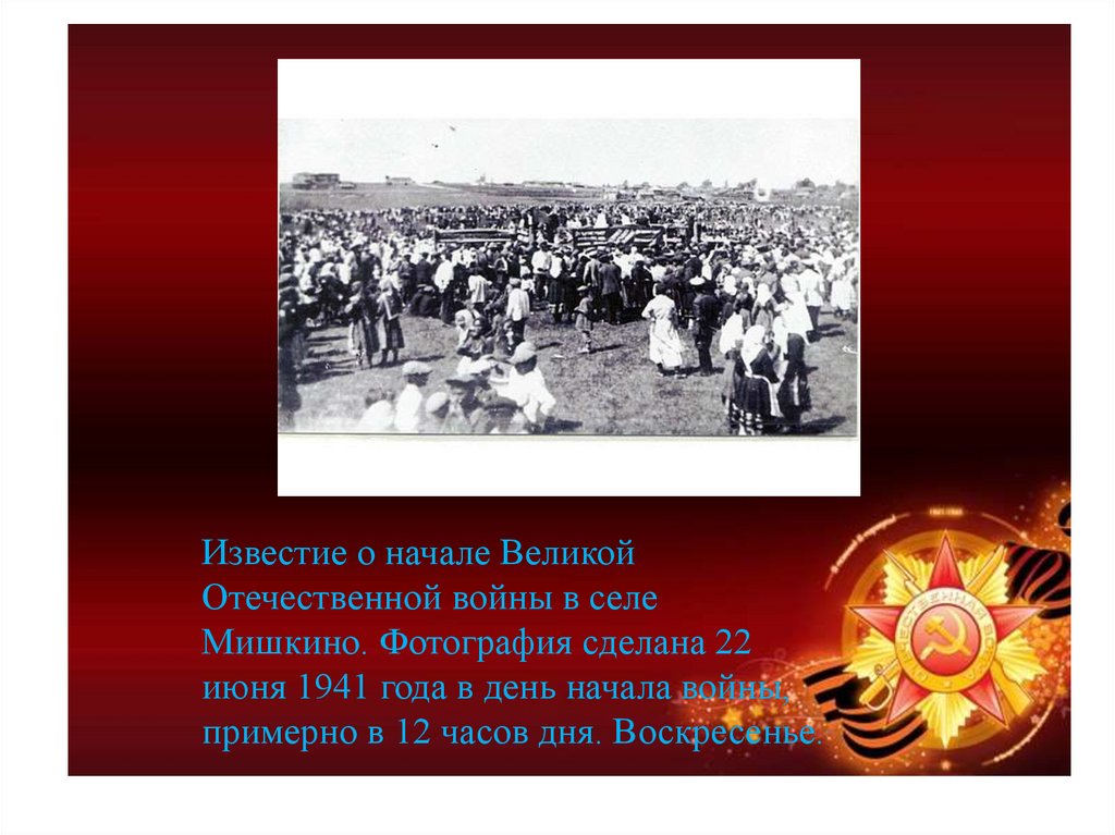 Известие о начале ВеликойОтечественной войны в селе