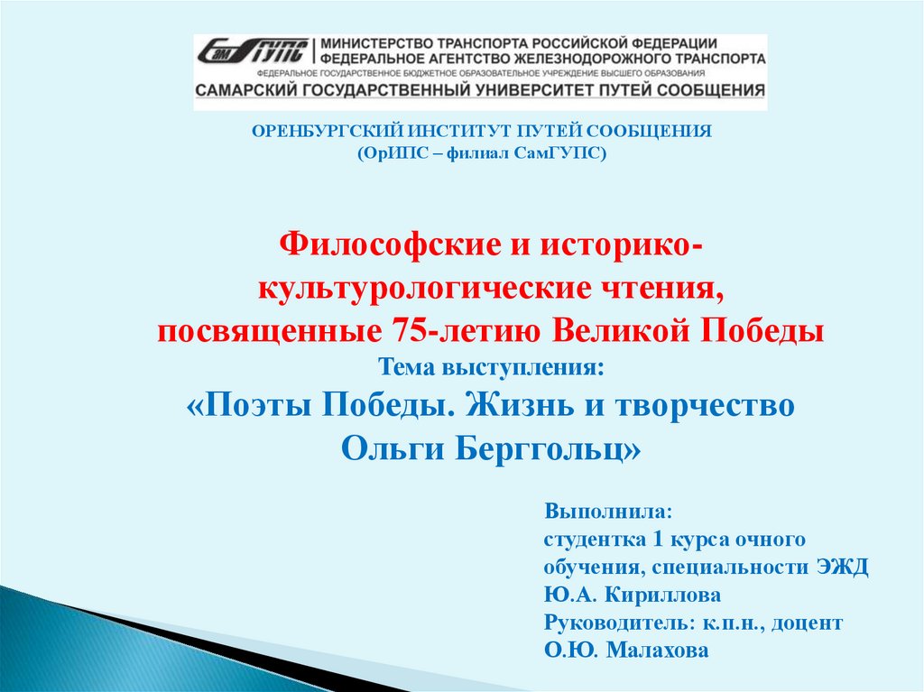ОРЕНБУРГСКИЙ ИНСТИТУТ ПУТЕЙ СООБЩЕНИЯ(ОрИПС – филиал СамГУПС)