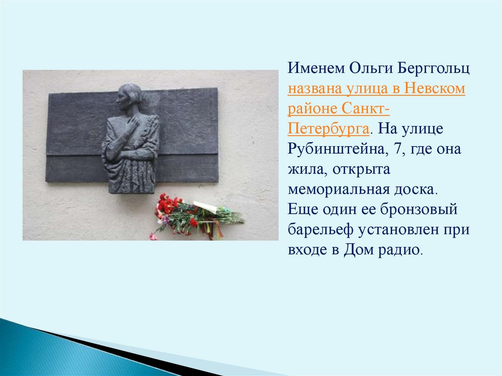 Именем Ольги Берггольцназвана улица в Невском