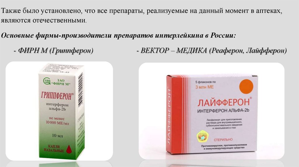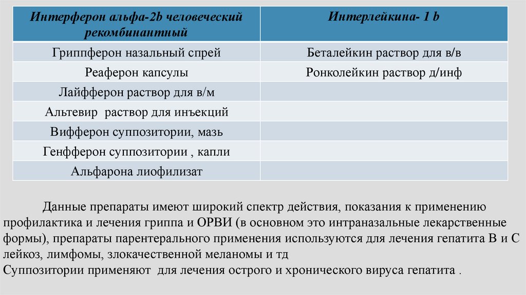 препаратов интерлейкина, их классификацию,