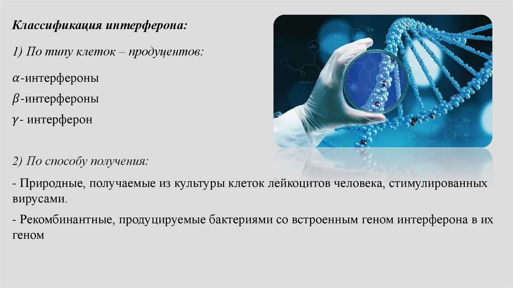 Классификация интерферона:1) По типу клеток – продуцентов:
