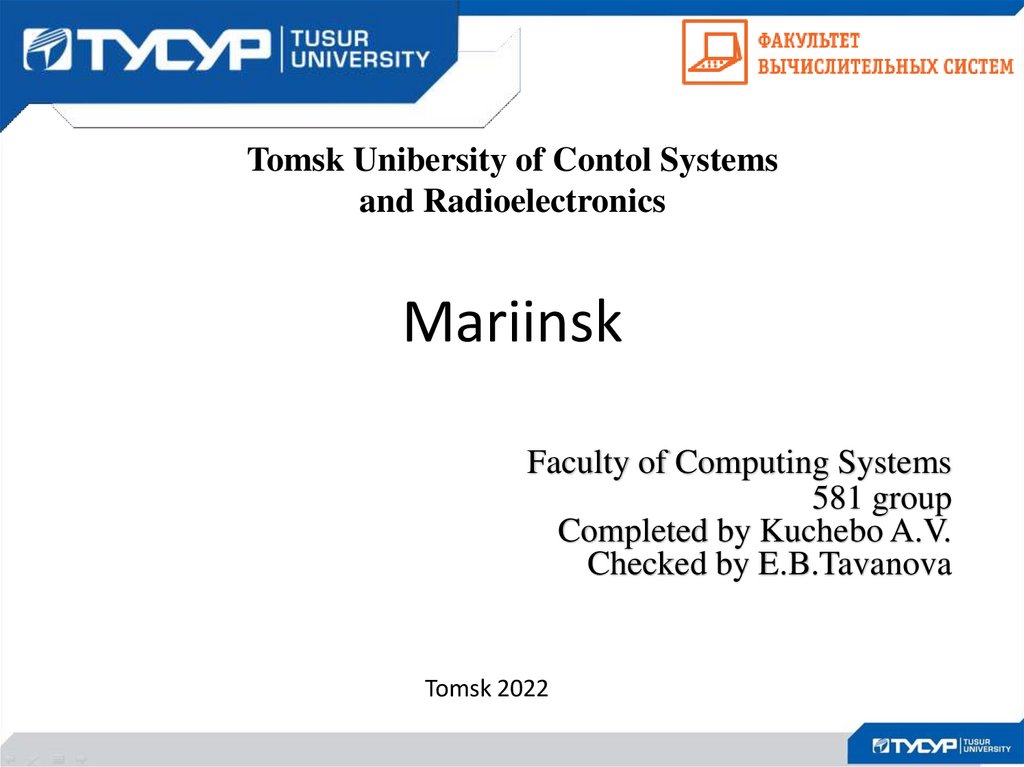 Tomsk Unibersity of Contol Systemsand Radioelectronics