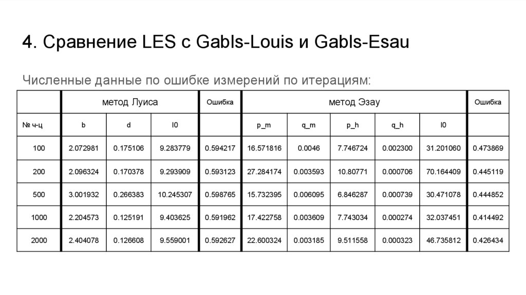 Приближение модели LES моделью Gabls методами Луиса и Эзау