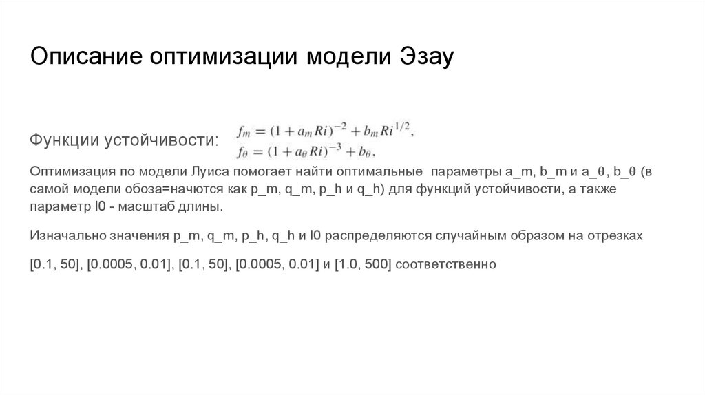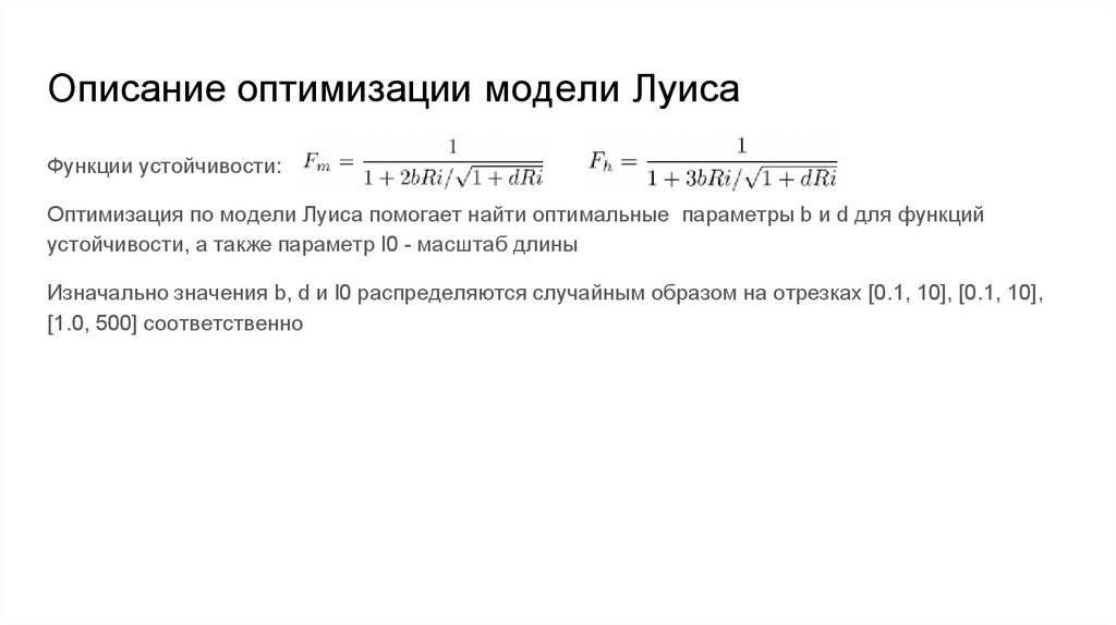Описание оптимизации модели ЛуисаФункции устойчивости:
