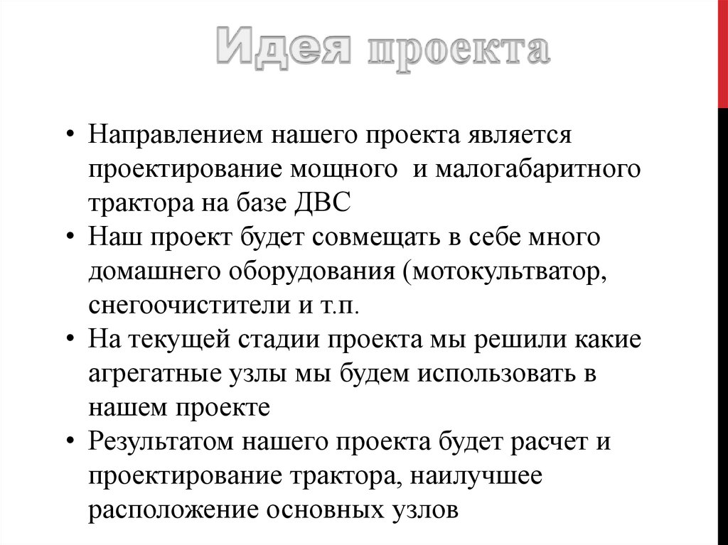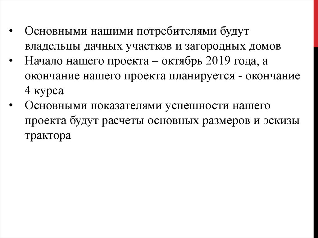• К концу семестра будут посчитаны основныеразмеры трактора; к декабрю 2020 года будут
