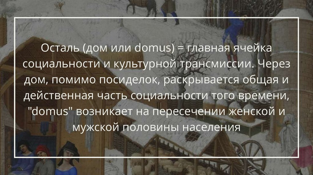 Осталь (дом или domus) = главная ячейкасоциальности и культурной трансмиссии. Через