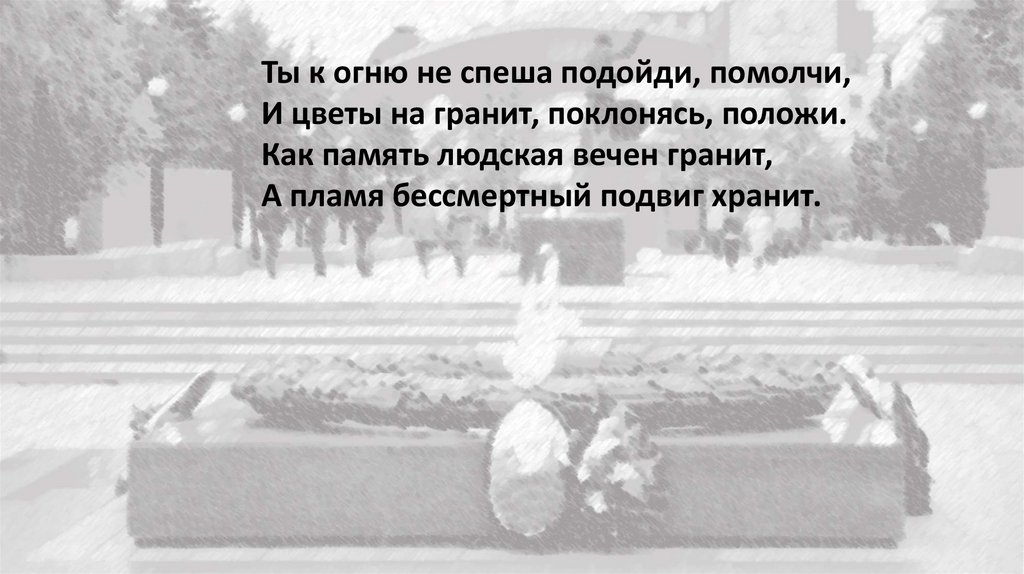 И цветы на гранит, поклонясь, положи.