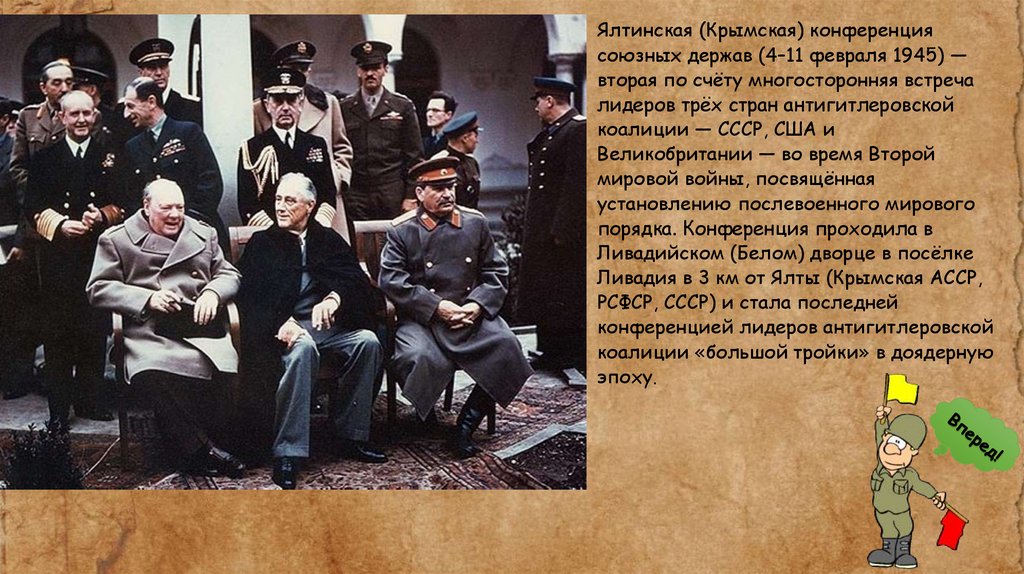 Ялтинская (Крымская) конференциясоюзных держав (4–11 февраля 1945) —
