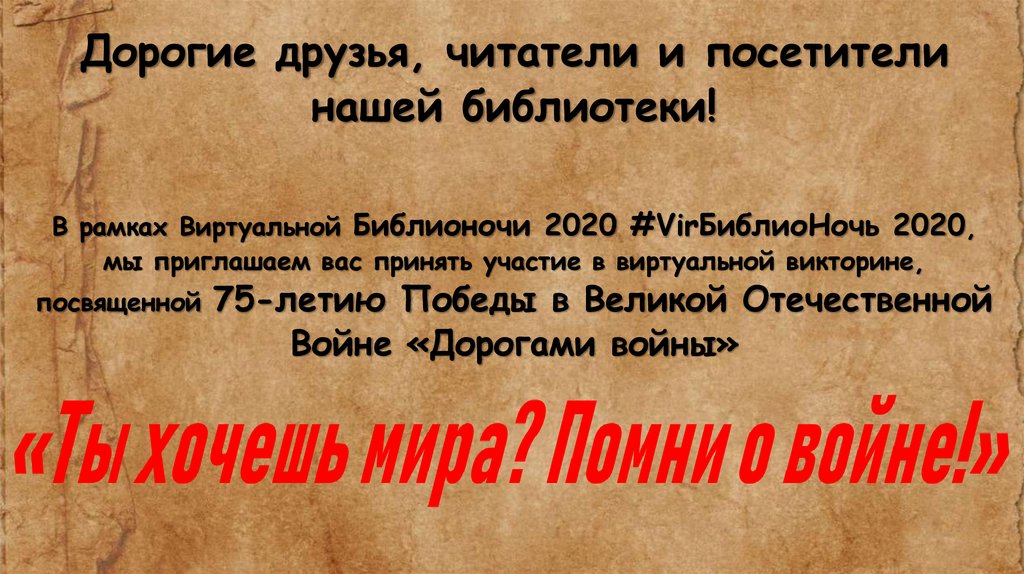 Виртуальная викторина«Дорогами войны»