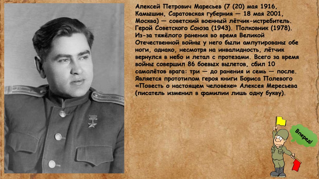 Является прототипом героя книги Бориса Полевого